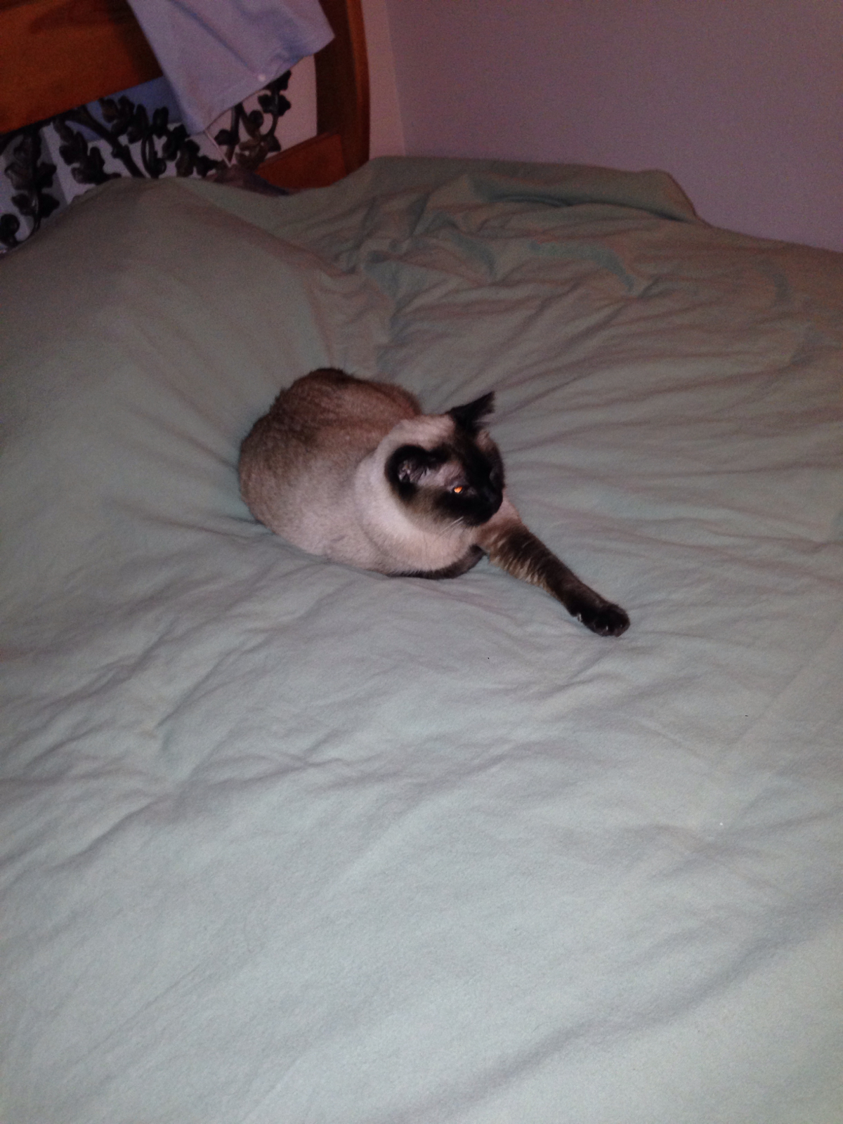 Fezzik in his morning position.