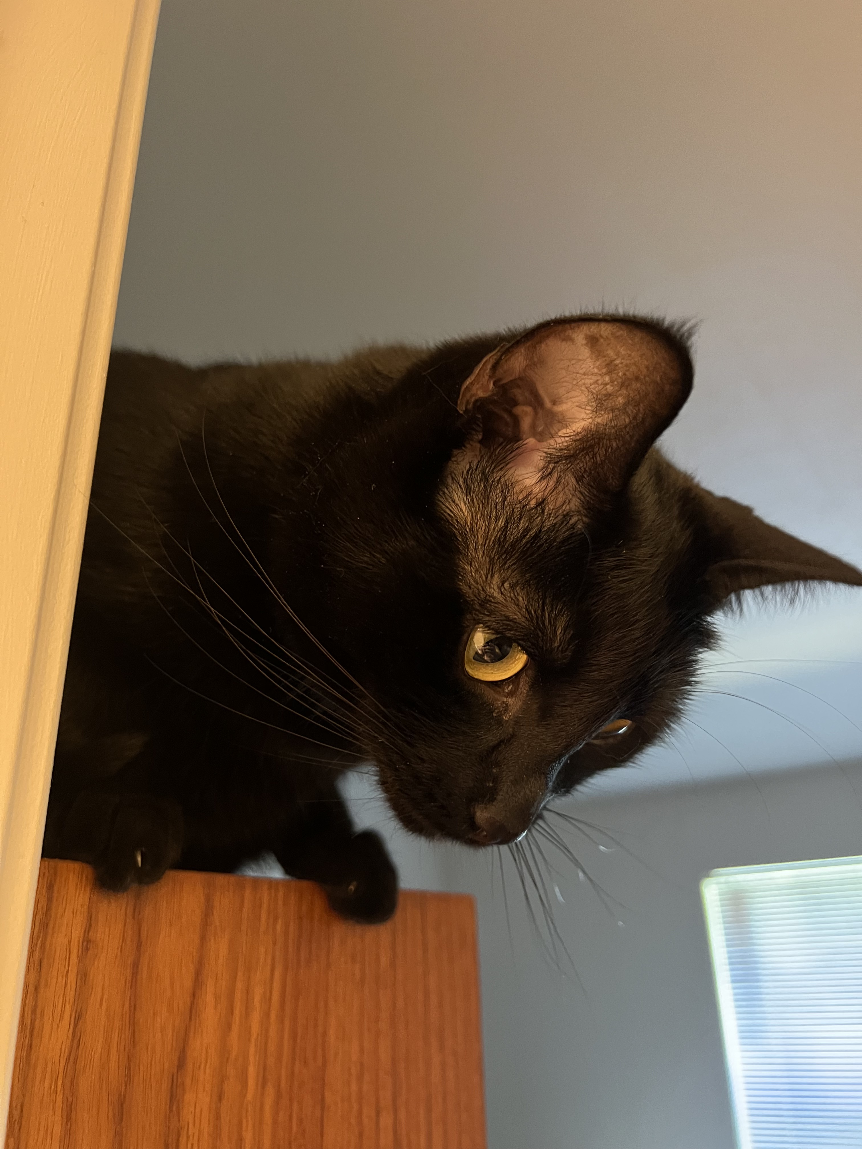 First meet was a little grumpy, but soon they were curious about each other through the door. Buto really wanted to go in and they really wanted to come out but I waited several hours before I opened the door.